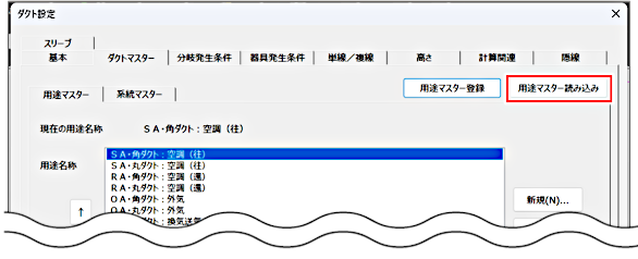 保存したダクト用途マスターファイル(*.ytdd)から用途マスターを読み込みます。