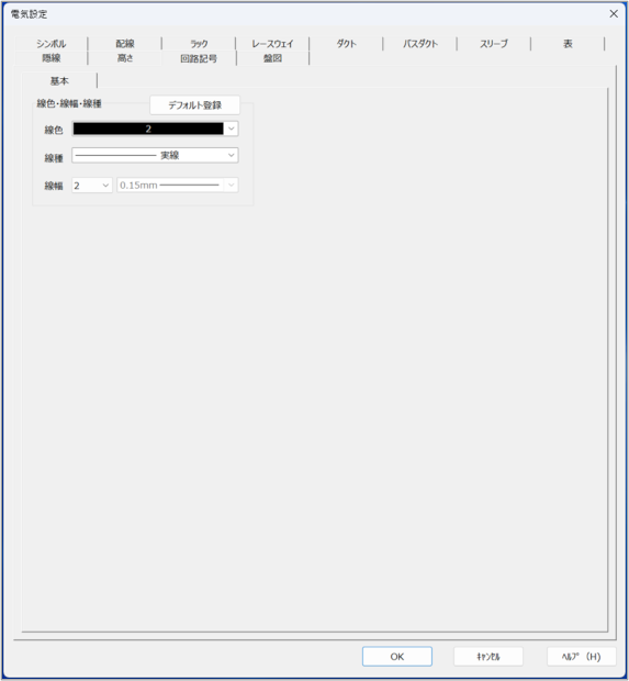 回路記号の線色・線種・線幅を設定します。