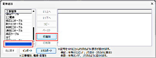 [工事種類]の最下行の空欄を選択し、[行追加]ボタンをクリックします。