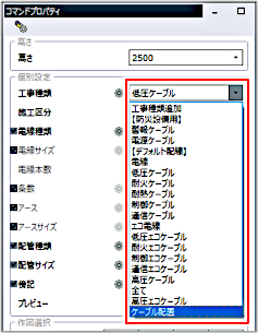 工事種類が追加され、[コマンドプロパティ]で選択できるようになります。
