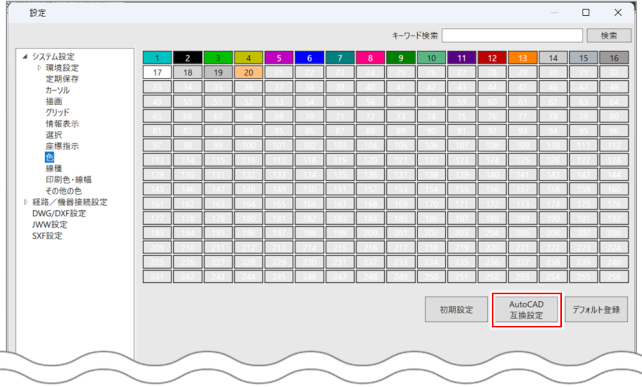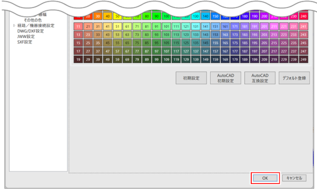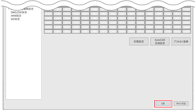 設定が完了し、[AutoCAD互換設定]ダイアログが閉じます。色に変更があった場合は、色のセルに設定が反映されます。