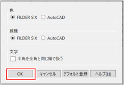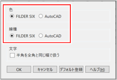 色の設定に、FILDER SiX固有の設定と、AutoCAD互換の設定のどちらを使用するかを以下から選択します。