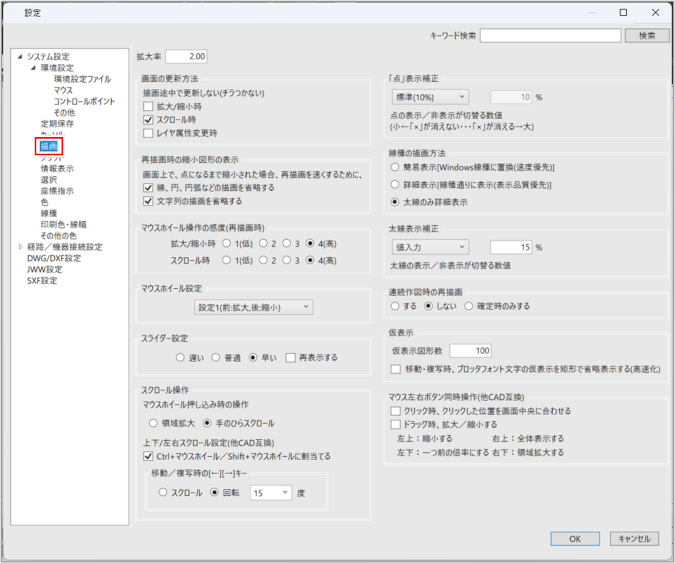 マウスホイール操作の感度(再描画時) |