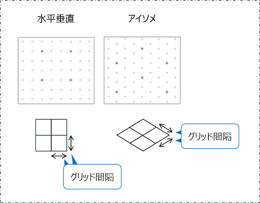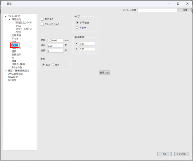 グリッド表示(作図位置の目安になる、等間隔に配置された点)を設定します。