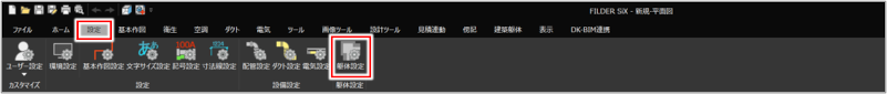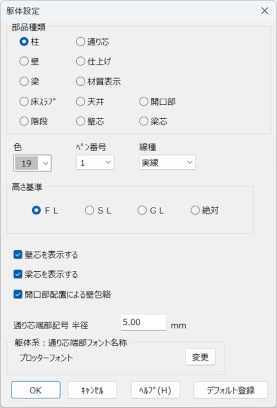 躯体作図時の、躯体部品の色、ペン番号、線種、包絡処理の有無を設定します。
