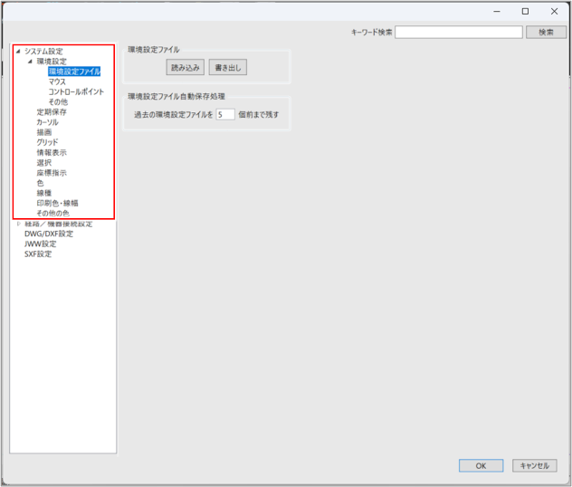 FILDER SiXで共通して使用する作業環境の設定を行います。環境設定ファイルの書き出しや読み込みにより、複数の環境設定を使い分けることもできます。