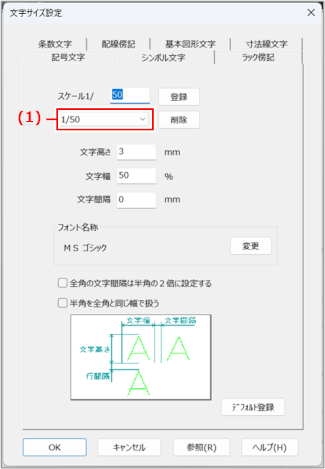 文字の間隔を、プロッタ出力時の実寸で、ミリメートル(mm)単位で入力します。 |