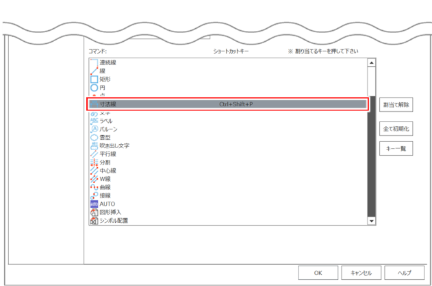 [コマンド]の一覧で選択しているショートカットキーの割り当てが解除されます。 |