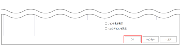 ツールバーにコマンド名を表示する場合はチェックを付けます。 |