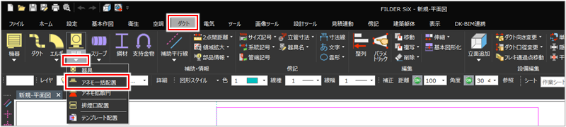 [ダクト]タブの[器具]プルダウンメニューから[アネモ一括配置](