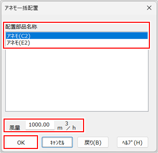 [アネモ一括配置](部品名称)ダイアログが表示されます。