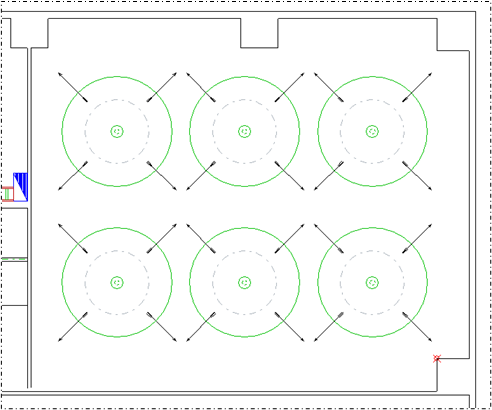 使用する口径・個数・ネック風速の配置パターンを選択します。[アネモ一括配置](部品名称)ダイアログで選択したアネモ名称・風量により、表示される配置パターンが異なります。 |