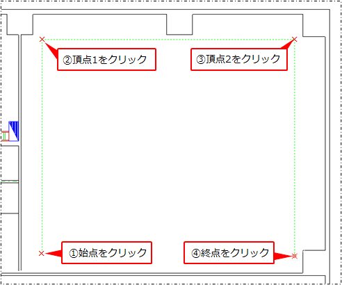 防煙区画の領域の始点・頂点・終点をクリックします。
