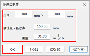 [排煙口配置]ダイアログが表示されます。