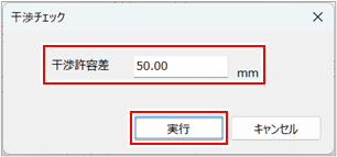 [干渉許容差]を入力し、[実行]ボタンをクリックします。