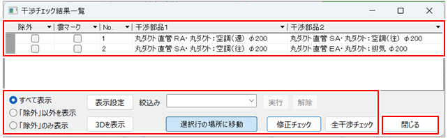 干渉チェックの結果を一覧で表示する(干渉チェック結果一覧)