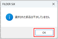 「選択された部品は干渉していません」と表示されます。[OK]ボタンをクリックし、操作を終了します。
