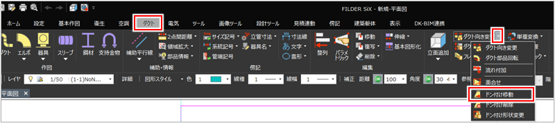 [ダクト]タブの[ダクト向き変更]プルダウンメニューから[ドン付け移動]コマンド(