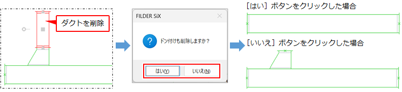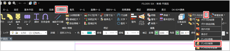 [ダクト]タブの[ダクト向き変更]プルダウンメニューから[ドン付け削除]コマンド(