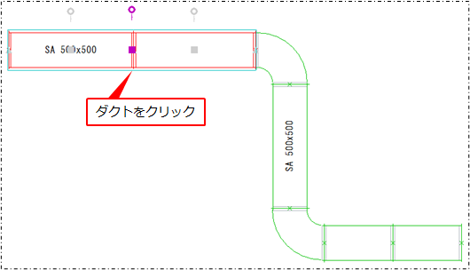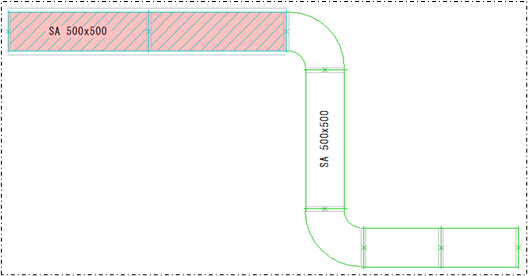コマンドキャンセルの状態で、ハッチング・塗りつぶし・保温表示を変更するダクトを選択します。