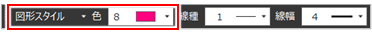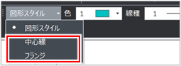 ダクトの中心線を変更する場合は[図形スタイル]プルダウンメニューから[中心線]を、フランジの色を変更する場合は[図形スタイル]プルダウンメニューから[フランジ]を選択します。