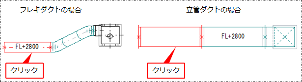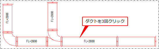 範囲選択や系統選択(2回クリック・3回クリック)で対象のダクトを選択します。