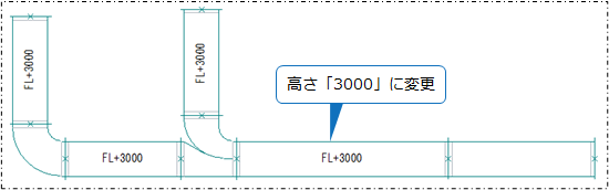 同一高さで作図したダクト経路全体の高さを変更する場合 同一高さで作図したダクト経路全体の高さを変更する場合