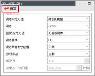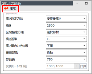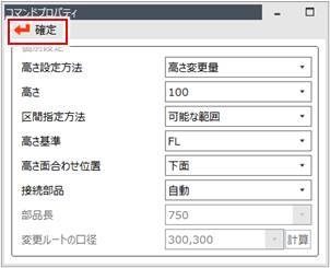 [コマンドプロパティ]の内容を確認して、[確定]ボタンをクリックするか、右クリックまたは[Enter]キーを押し、確定します。