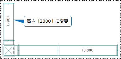 ここでは、例として高さ「2800」のダクトの高さを「3000」に変更します。