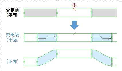 高さ違いのルートを含む全経路を一定の変更量で高さ変更する場合高さ違いのルートを含む全経路を一定の変更量で高さ変更する場合