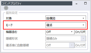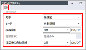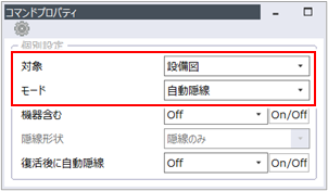 [対象]で[設備図]、[モード]で[自動隠線]を選択します。