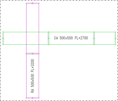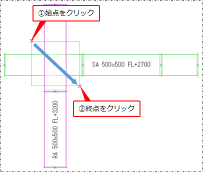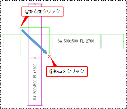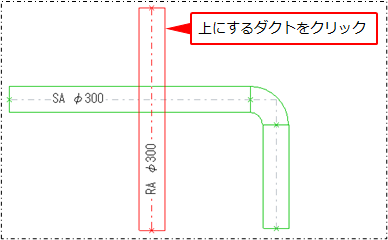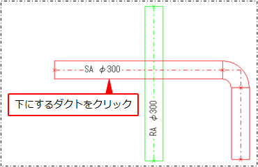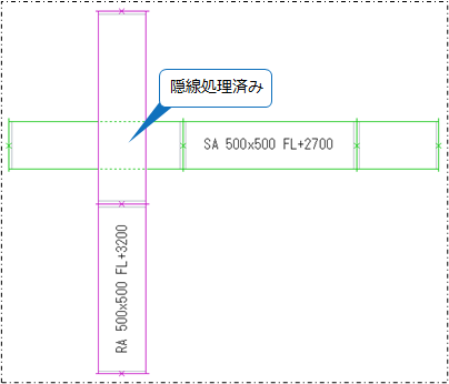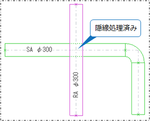 同じ高さのダクトを隠線処理する場合(クリップ)同じ高さのダクトを隠線処理する場合(クリップ)