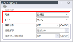 [対象]で[設備図]、[モード]で[クリップ]を選択します。
