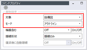 [対象]で[設備図]、[モード]で[アウトライン]を選択します。