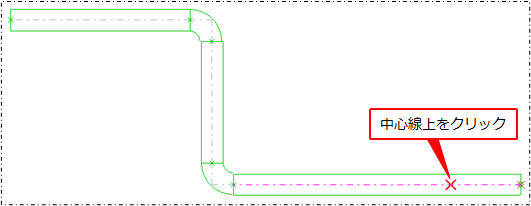 枝ダクトを作図するダクトの中心線上をクリックします。