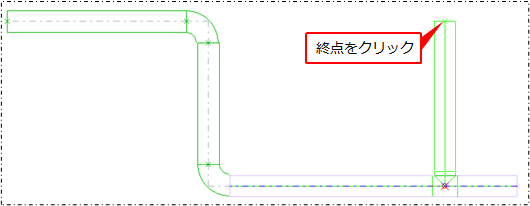 終点を再度クリックしても、ダクト作図を確定できます。枝ダクトを始点、メイン管を終点にした場合は、手順4の操作は不要です。