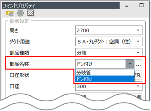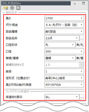 ダクトの[コマンドプロパティ]の設定を確認します。