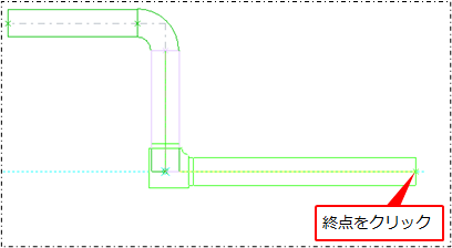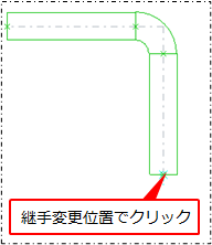 丸ダクト作図の途中で継手の種類を変更して作図します。