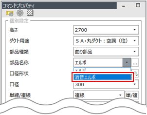 [コマンドプロパティ]の[部品名称]から継手を選択します。