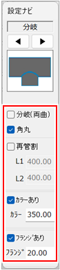 両曲分岐したドン付けを作図する場合は、チェックを付けます。 |