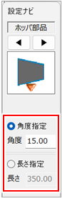長さを指定してホッパを配置する場合は、チェックを付けて配置する長さを入力します。 |