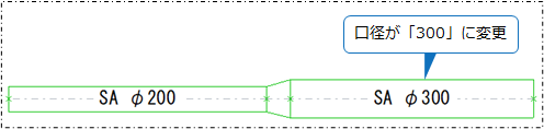 口径が異なる丸ダクトが作図されます。