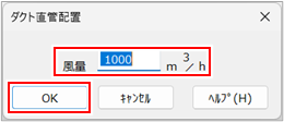 丸ダクトの口径値を風量から自動計算する場合にクリックします。[ダクト直管配置]ダイアログで[風量]を入力し、[OK]ボタンをクリックすると、計算結果が[口径]に反映されます。 [ダクト設定]ダイアログの[計算関連]タブで、[サイズ決定法]の[計算方法]から[全圧法]または[等速法]を選択している場合に設定できます。