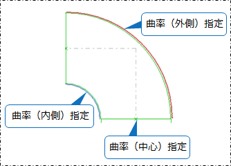 丸ダクトを作図する場合は、[丸]を選択します。[角/丸]ボタンをクリックすると、[角]と[丸]が交互に切り替わります。 [角][丸]を切り替えて作図した場合でも、レイヤは[ダクト用途]で指定した用途ごとのレイヤに作図されます。 |