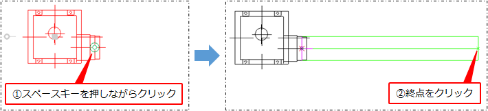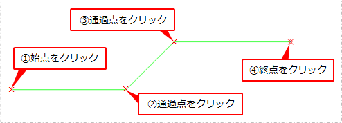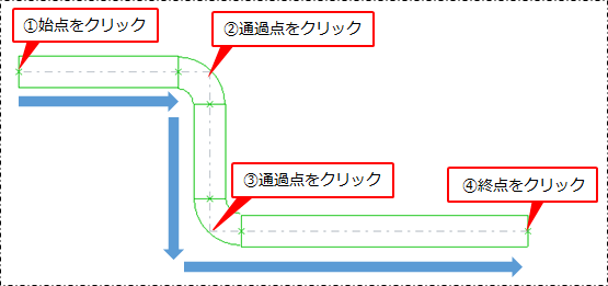 フレキダクトルートの始点・通過点・終点をクリックします。