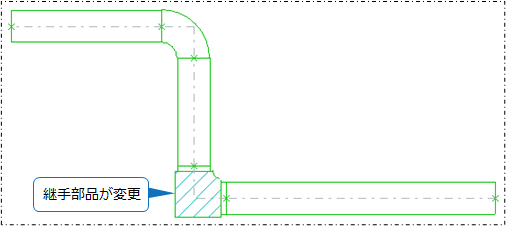 継手などの部材に接続点がある場合は、キーボードのスペースキーを使用して、部材から丸ダクトルートを作図できます。 エルボなどの部材を選択後、スペースキーを押しながら