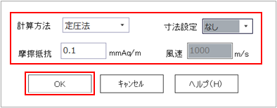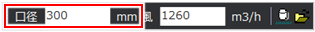 入力した風量により、口径値が自動計算され、[口径]に入力されます。