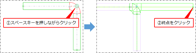 終点を再度クリックしても、丸ダクト作図を確定できます。