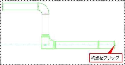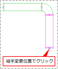 角ダクト作図の途中で継手の種類を変更して作図します。