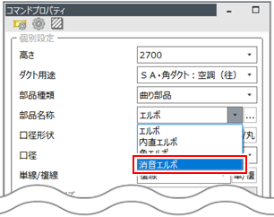 [曲り部品]-[角エルボ]の場合[曲り部品]-[角エルボ]の場合